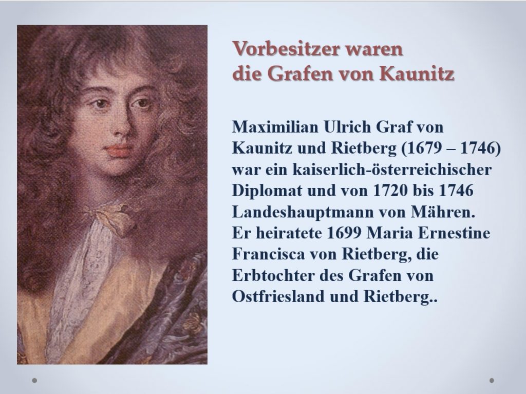 Heute ist vielen nicht bekannt, dass der Ortsname Kaunitz auf die Grafenfamilie von Kaunitz zurückgeht, die ihren Sitz in Austerlitz/Mähren hatte.